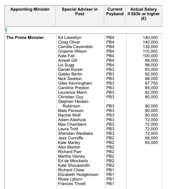 A Government data release of all taxpayer-funded special advisers were also published and it showed that the bill for the Government’s team of 96 spin doctors had hit £8.4m.