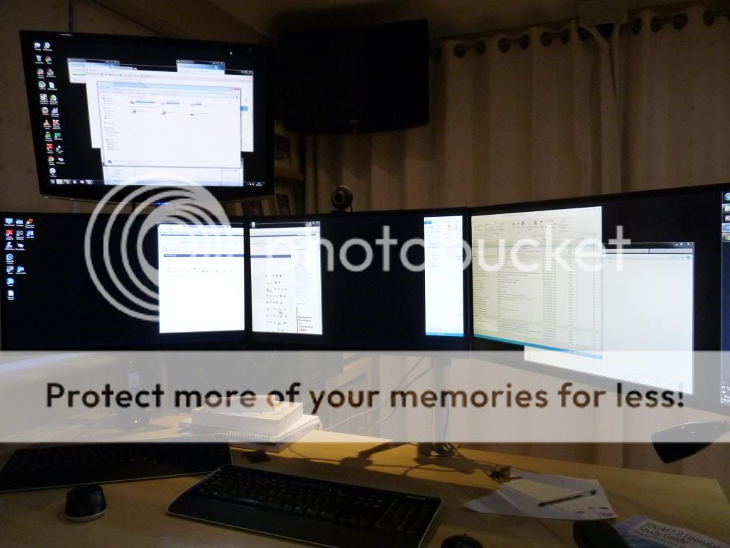 Nope, the tops of the monitors are only 23" above the desk and my line of sight is 2/3 of the way up the screen. I have put them there so that I have to hold my head up slightly and avoid slouching - after back problems from hunching my shoulders over badly positioned monitors for years I find this is very comfortable.Originally posted by d000hg View PostThose monitors look kind of high up?...my quagmire of greed....my cesspit of laziness and unfairness....all I am doing is sticking two fingers up at nurses, doctors and other hard working employed professionals...